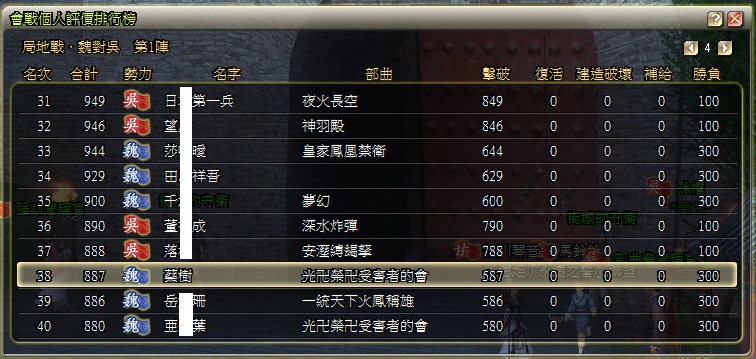 今回は魏vs呉でしたが、50帯は50vs50なるのに他のは20人近い差を叩き出すw