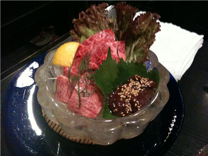 この↑牛刺しの器は、なんと氷で出来ておりました。
