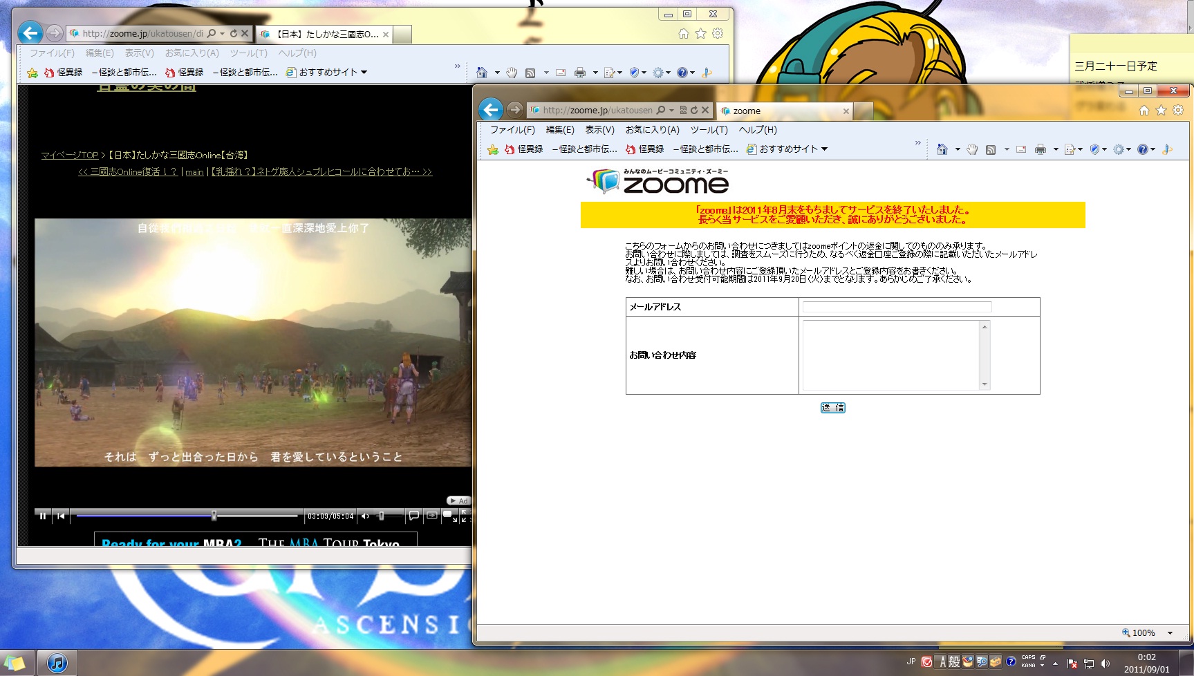 2011年8月31日を以て、動画コミュニティーサイトのZOOMEがサービスを終了しました。