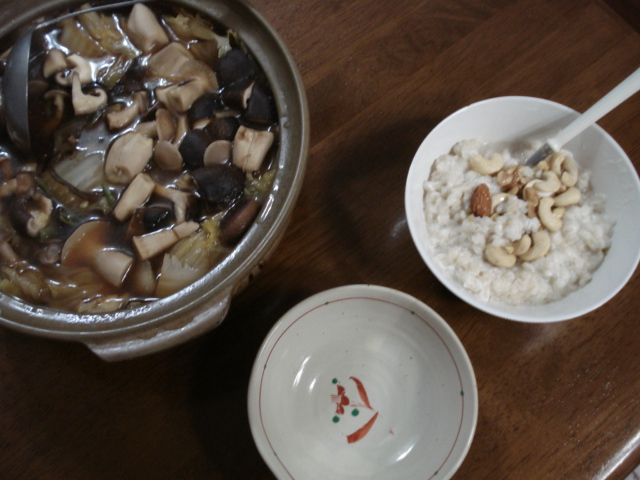 山菜鍋(左)とあまいおかゆ(右)