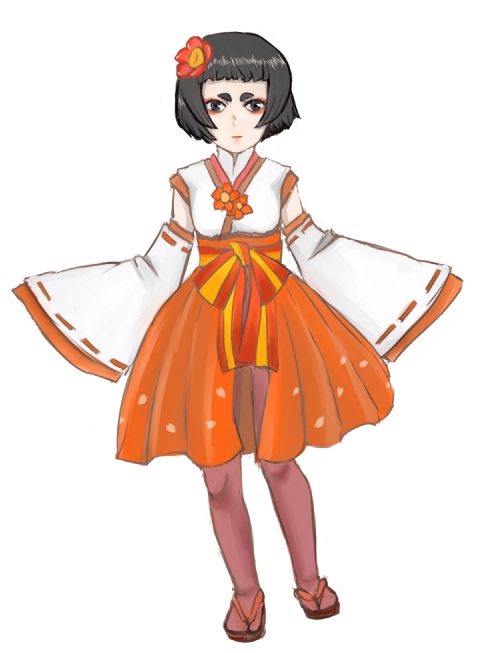 ドラネスのなんとかかんとかって職業のキャラが着ている巫女服がめちゃんこ可愛かったから蔡樹に着せてみた! 細部が違うけれど!