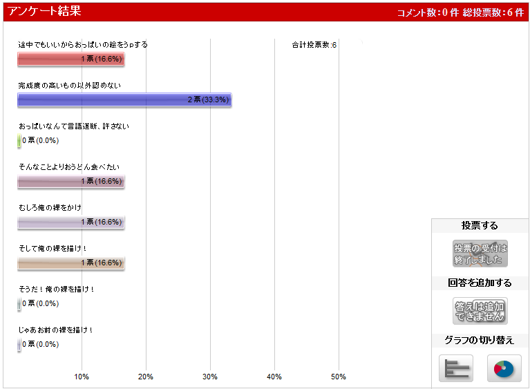 ネタでやってみたアンケートがいつの間にやら締め切られていますが、投票&回答追加して下さった皆様有難うございました!w