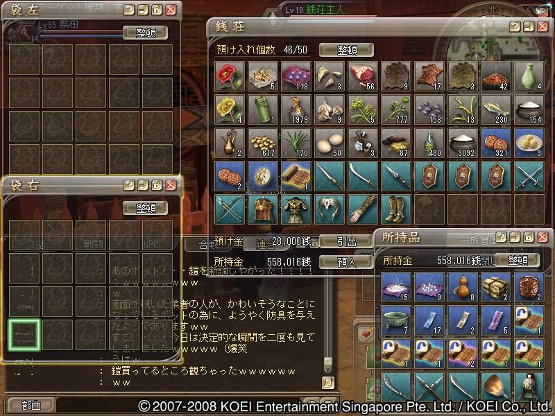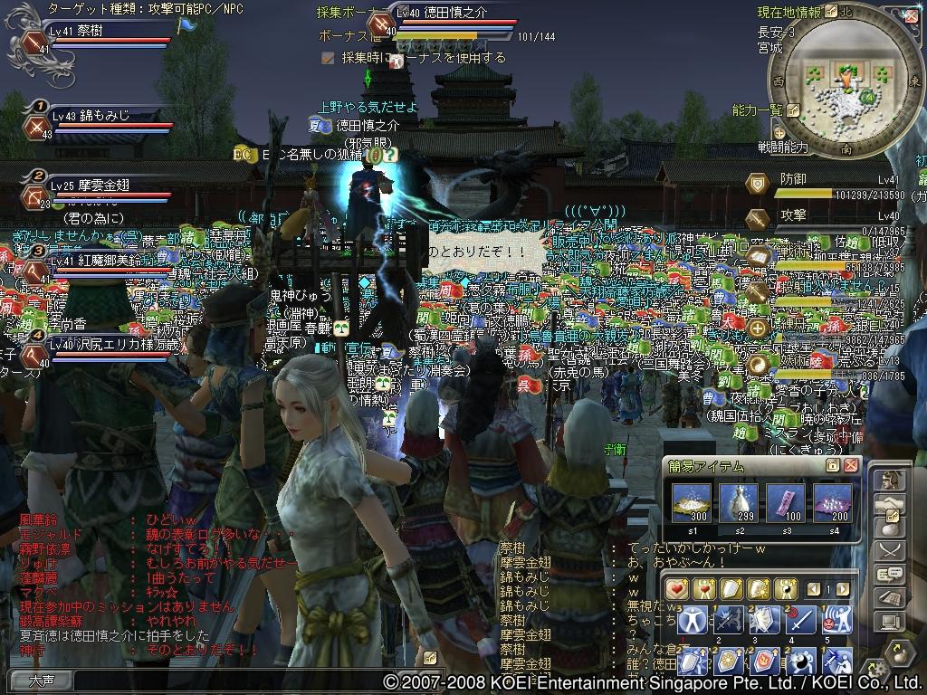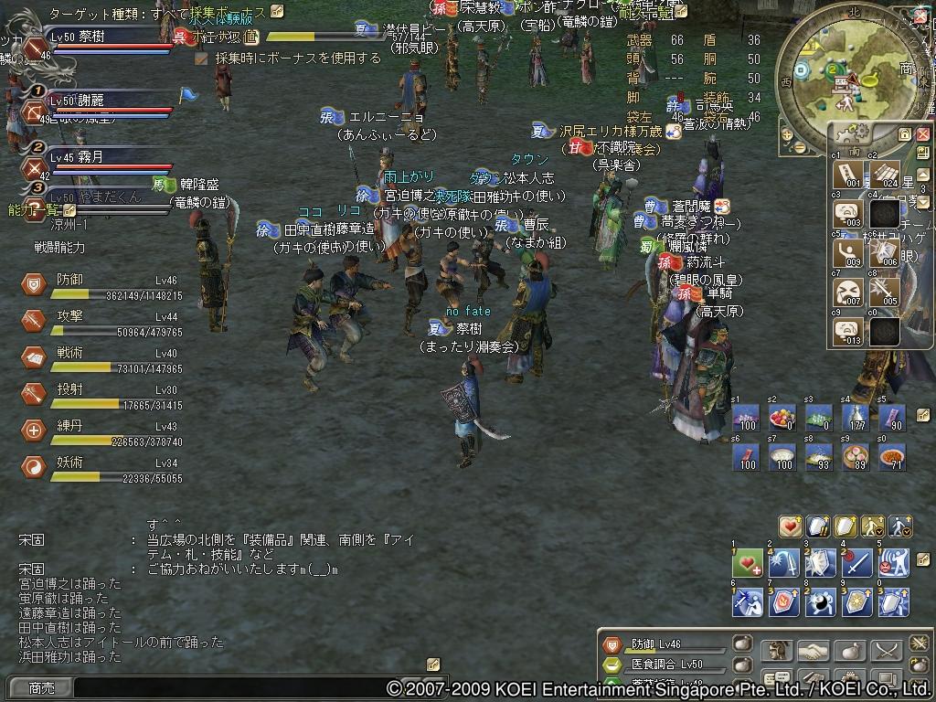 合戦、部曲戦、闘技、PD攻略、狩り、生産。そしてチャット。