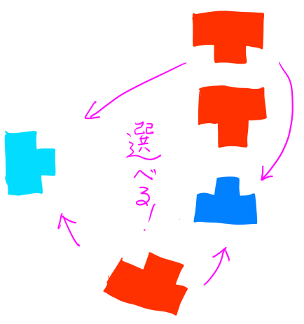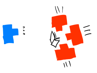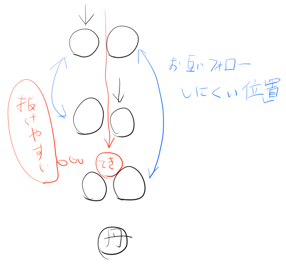 当然固まって人数多い状態で動いた方が強いのですが、ばらばらに動くように。